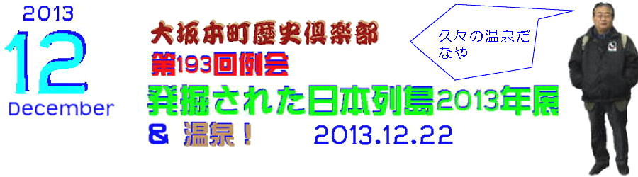 さて当日今月の例会は12月22日(日)に今年の企画展 「発掘された日本列島2013」 を見に行くこととなりました。
