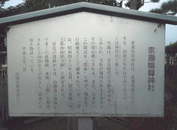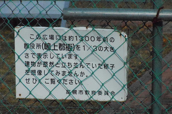 このあたりは古代は嶋上(しまがみ)郡だったので「嶋上郡衙」という事になる。その前に、郡衙の中(?)にあった素戔嗚