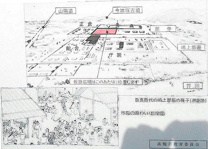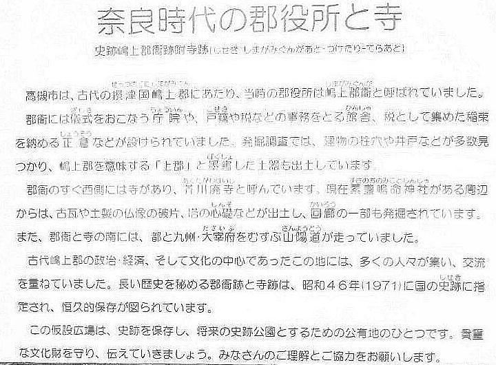 山陽道の北側に郡役所、その西側に郡寺や倉庫群が建ち並び、嶋上郡の政治・経済の中心だったと考えられています。