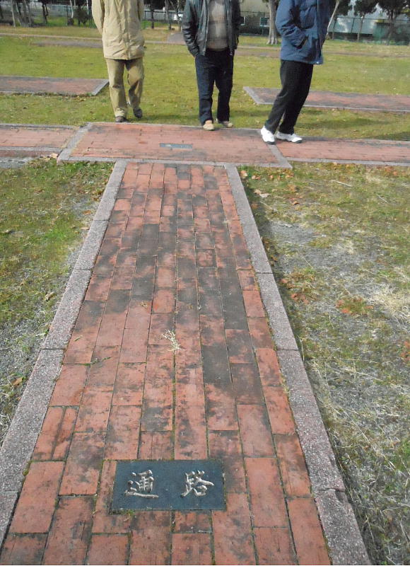 史跡の中心部にあたる川西小学校北西側の一画には、庁院を3分の1の大きさで、平面表示しています。