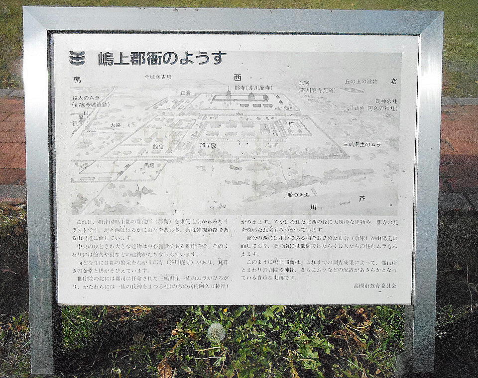 庁院の西側には郡寺(芥川廃寺)、北に位置する式内社・阿久刀(あくと)神社周辺には嶋上郡の郡司(長官)一族の住