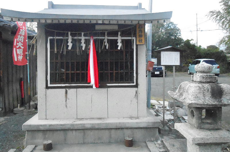 説明板によれば、この辺り一帯には郡衙の建物が立っていたと思われる。この神社は守護の為その中に鎮座していたのかもしれない。