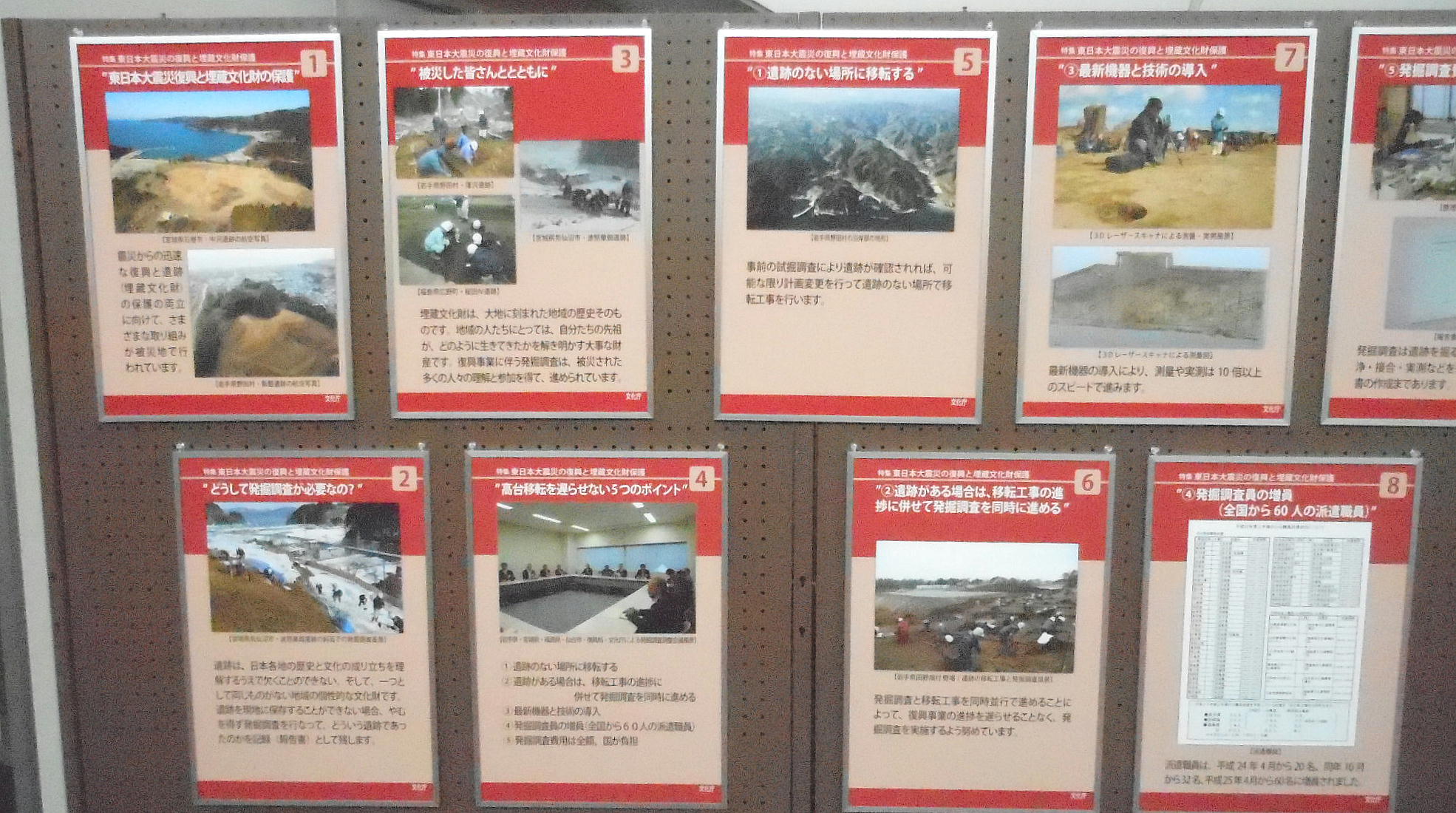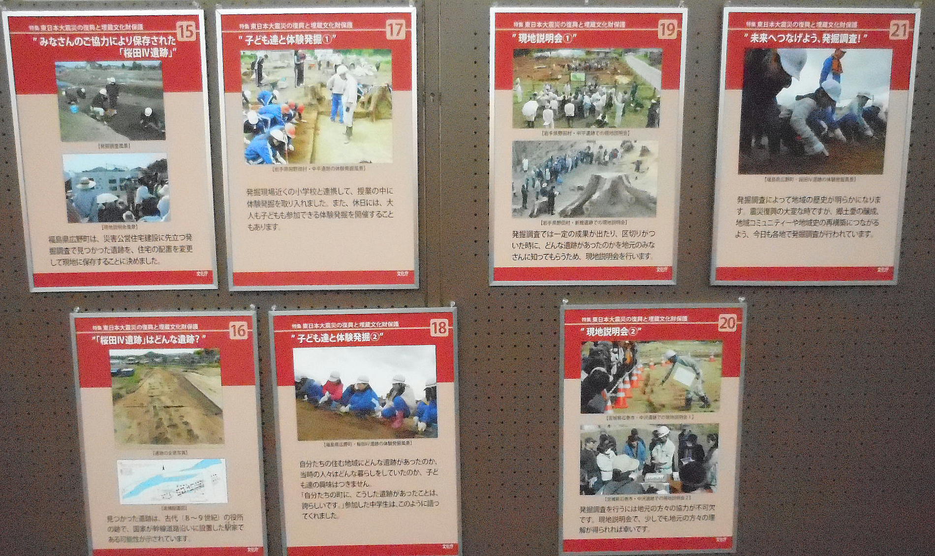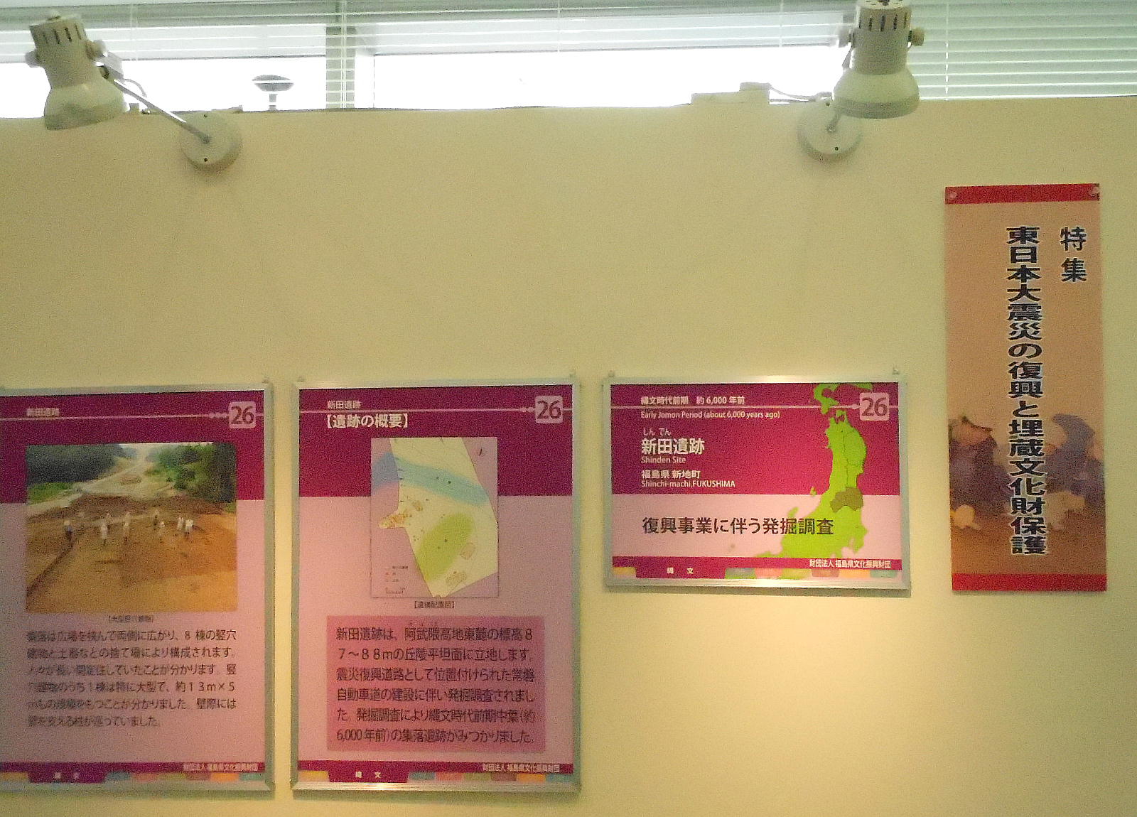 ともに,特集展示「東日本大震災の復興と埋蔵文化財保護」と題し,現在東北地方(岩手県・宮城県・福島県)で行われている