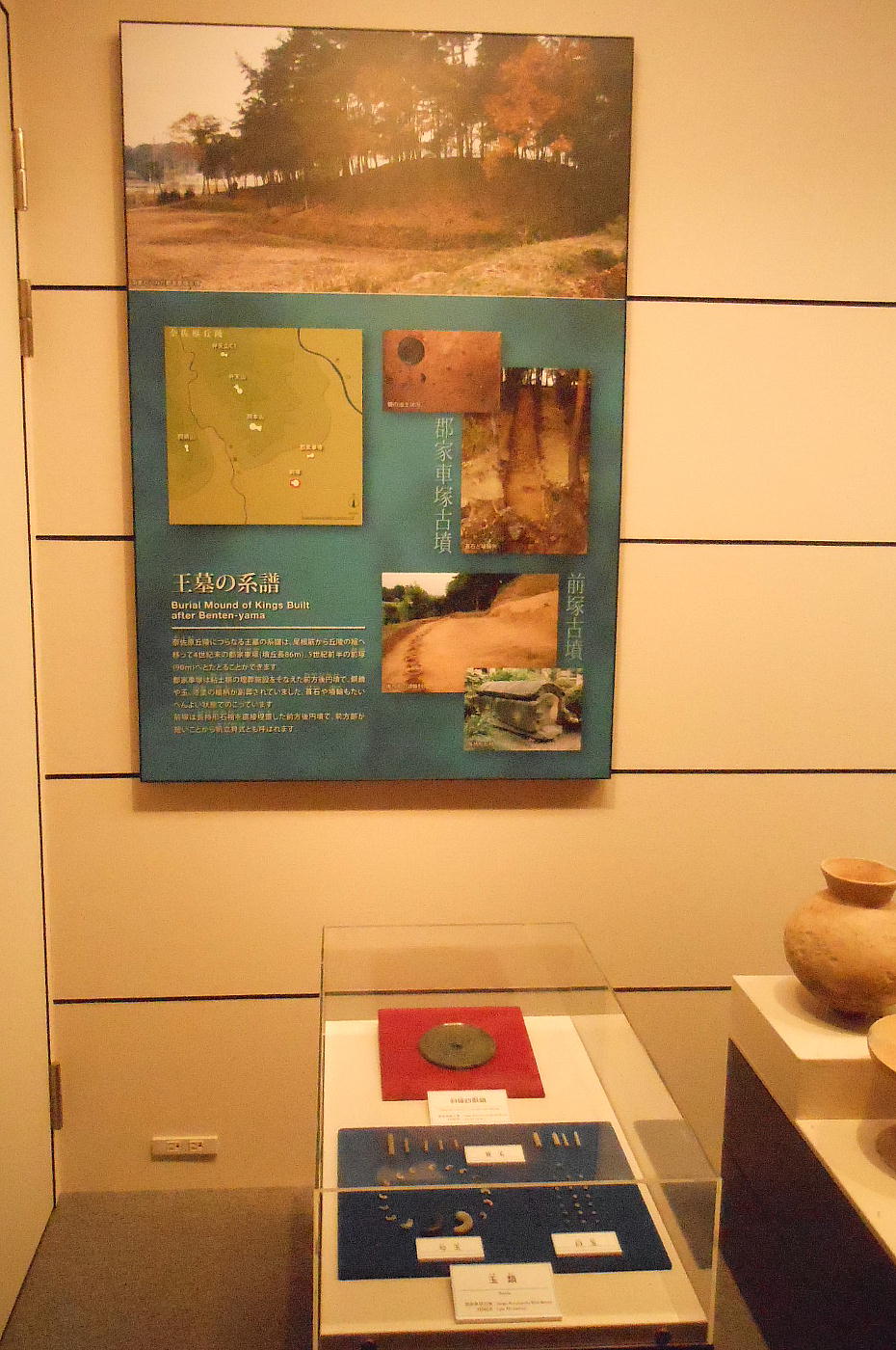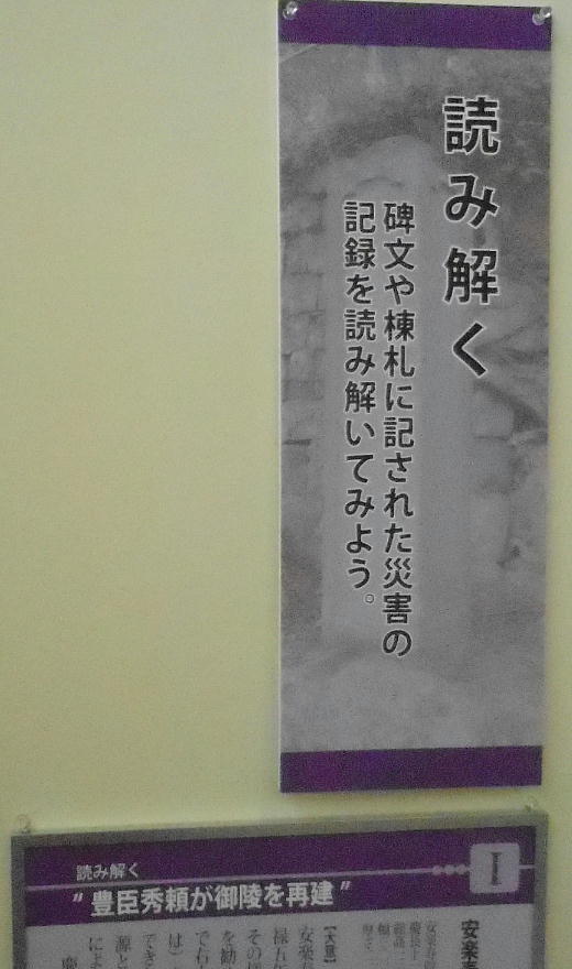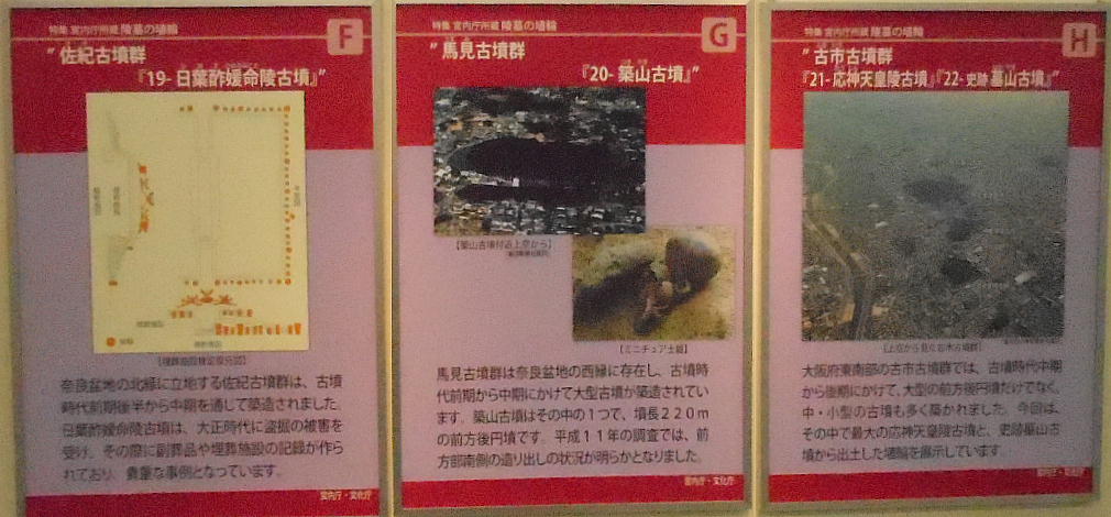 発掘調査の結果、および近畿の災害の爪痕を展示していたが、それは二階にも続いており、また二階には「宮内庁所蔵 陵墓の埴