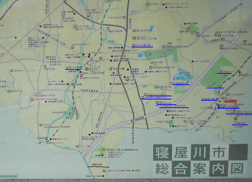 JR東寝屋川駅→寝屋川市立埋蔵文化財資料館→石宝殿古墳(高良神社)→明光寺→弘法井戸→道標→<昼食:東寝屋川駅北側