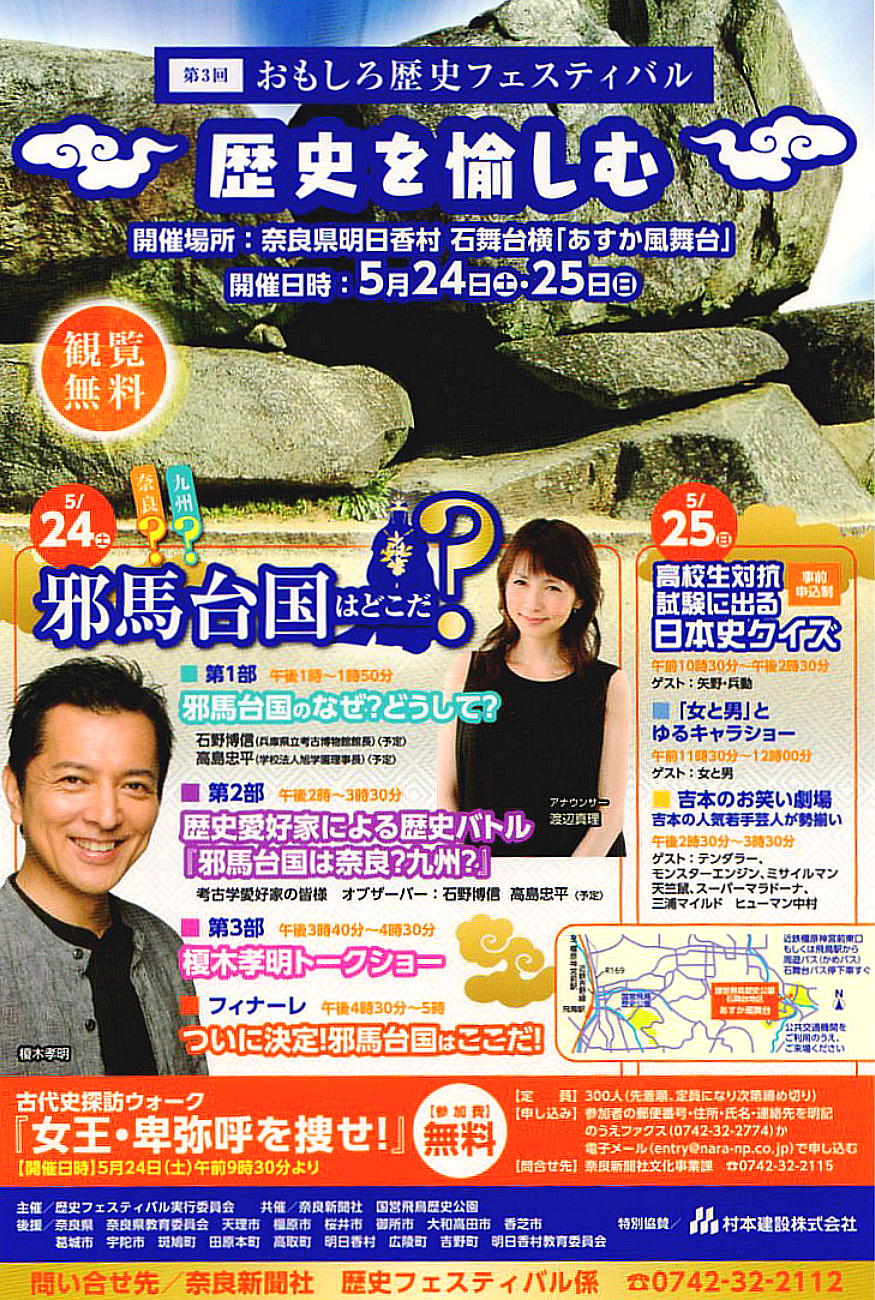コースや時間の詳細は決まっていなかったようだ。早々と参加証が送って来たが、天理駅集合で石舞台まで午前中に着くという