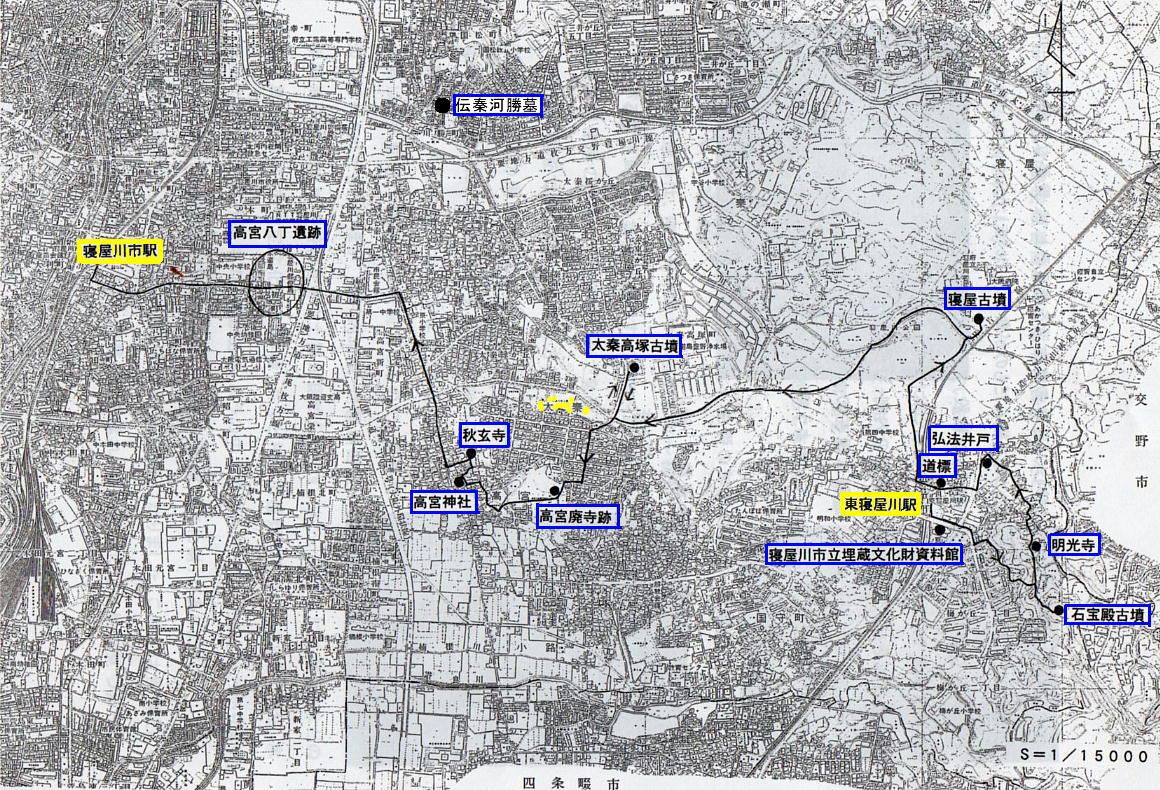 四時半頃解散予定)(尚、時間と元気があれば、高宮八丁遺跡から、川勝町の「伝秦河勝墓」を訪ねたいと思います。)