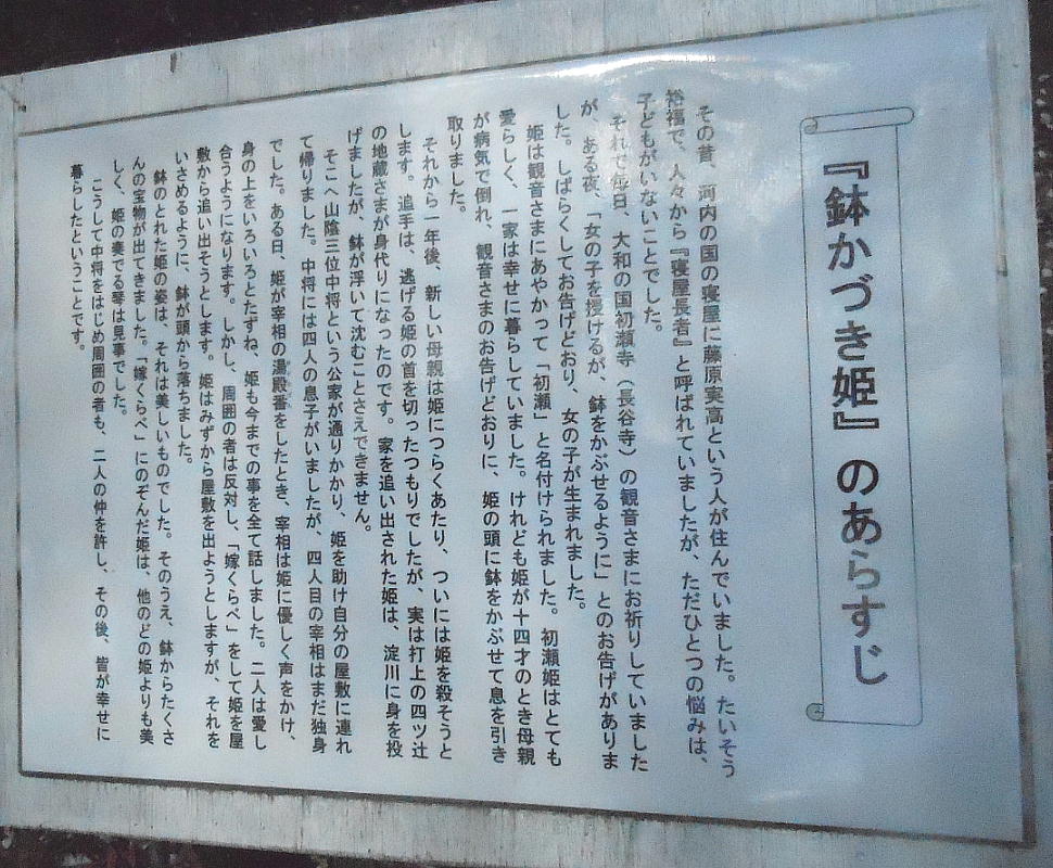 やっと出てきた「鉢かつぎ姫」の由来だ。