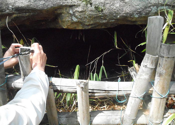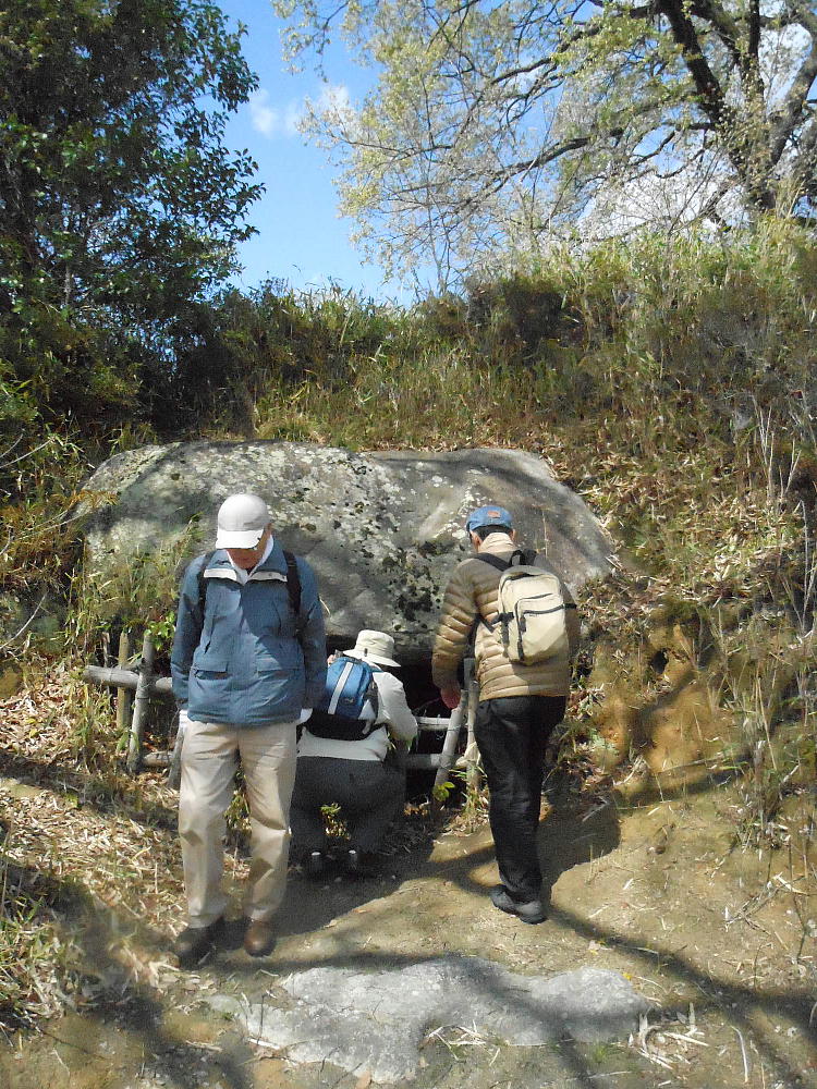 石室の中。いくつかの大石を組合わせて側壁とし、大きな天井石を支えている。