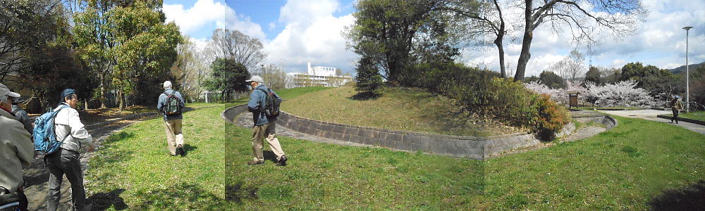 向こうに見える墳丘とくっついて大きな前方後円墳だったのではという意見も出ていたが、どこにもそういう記述は無い。