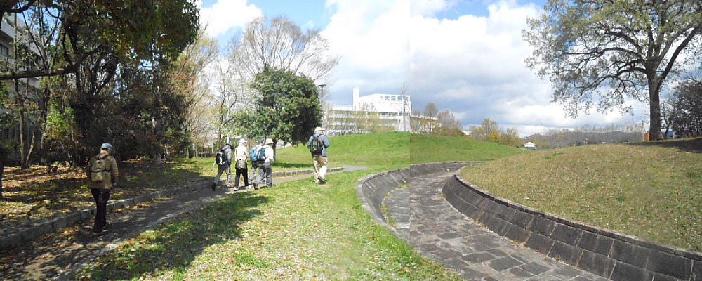 昼食後、寝屋川公園内を古墳目指して歩く。ええっと、この花の名前は、ううーん、忘れた。