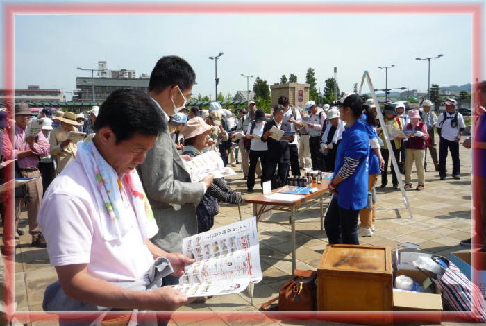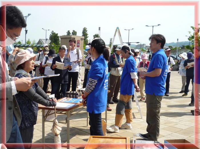 主催者側の説明を聞く皆さん。このイベントの主宰は「歴史フェスティバル実行委員会」