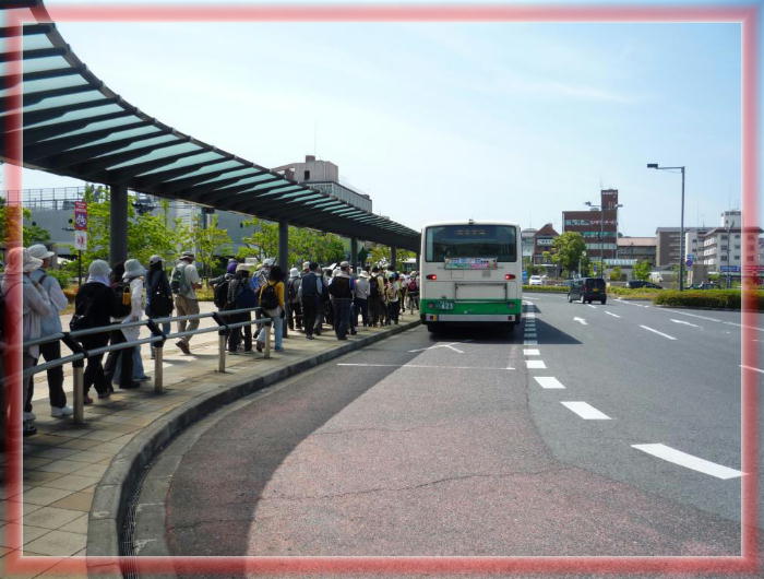 説明が終わりバスに乗り込む倭が歴史倶楽部の面々。うう、行きたかった。