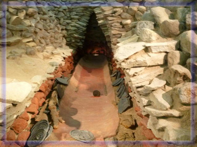 た模様である。水銀朱のところに安置されていたものと考えられている。なおこの縦穴石室は、ほぼ真北を向いており、被葬者の
