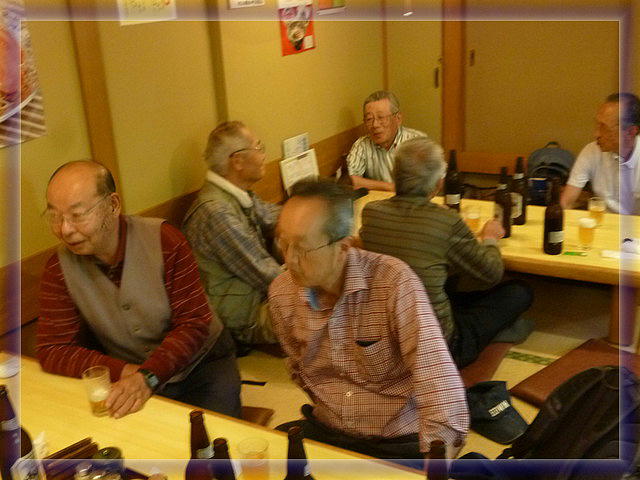 例によって、橿原神宮駅ホーム内の料理屋「きはる」にて反省会。一人頭1,600円とめちゃ安かったが、