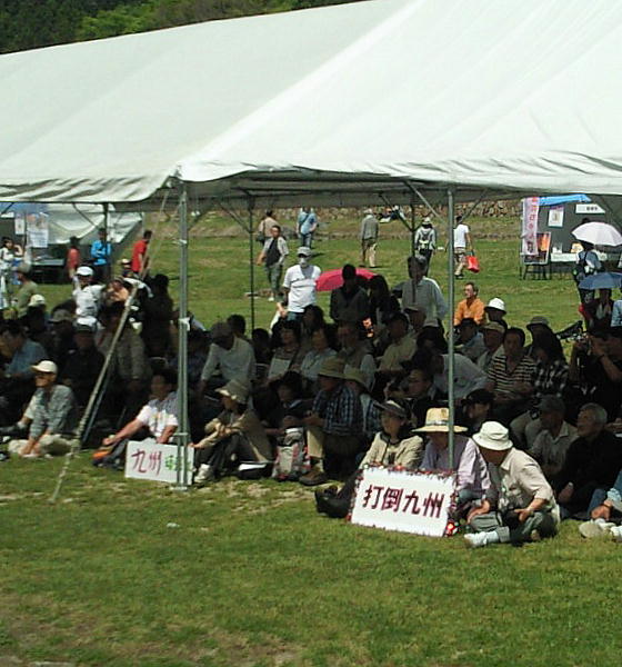テントの中をよく見ると「九州応援団」と「打倒九州」が隣同士で座っていた。韓国なら殴り合い、中国なら殺し合っているかも。