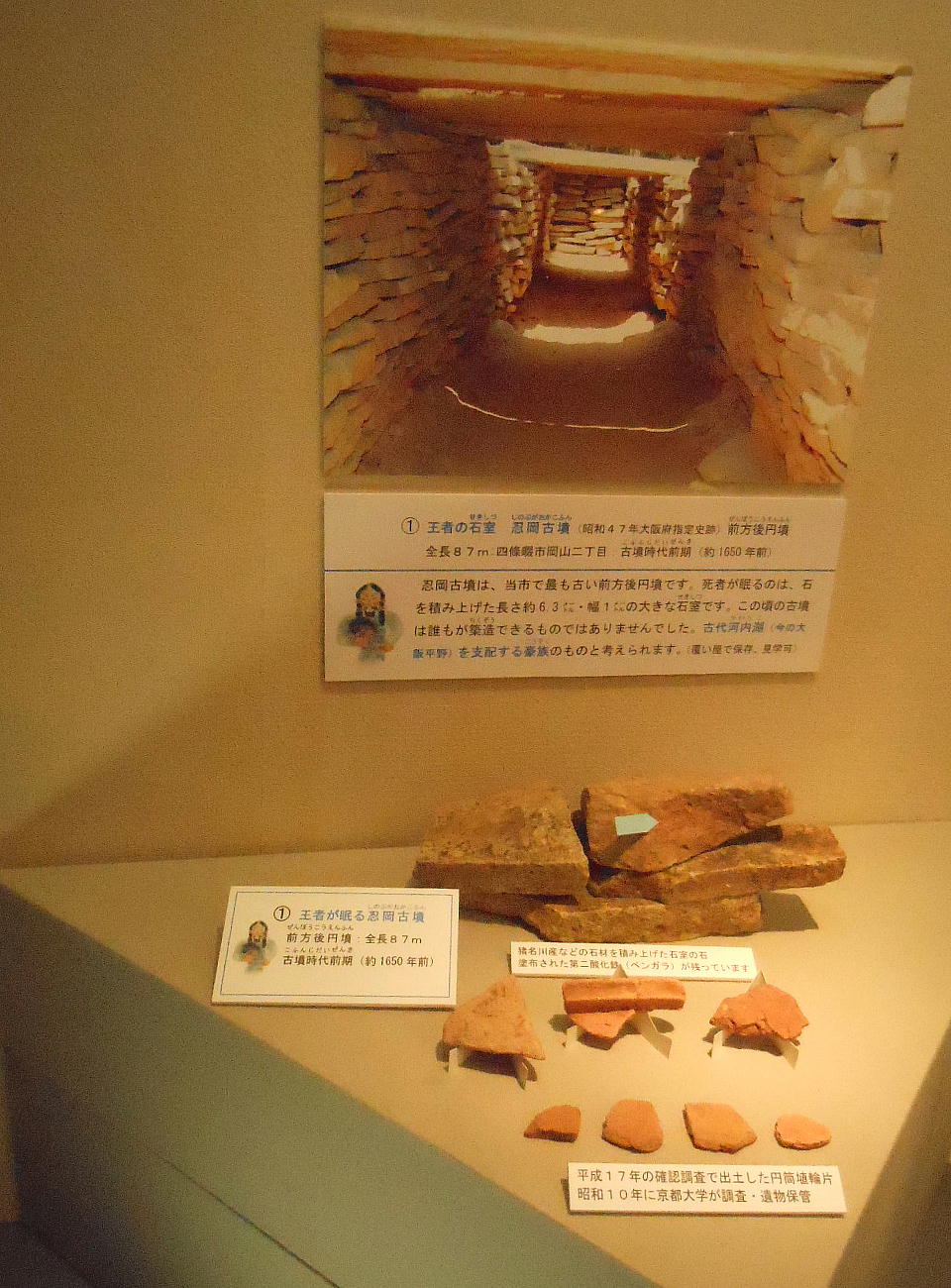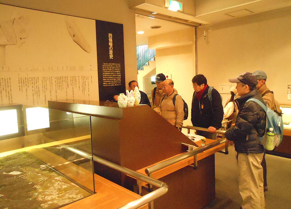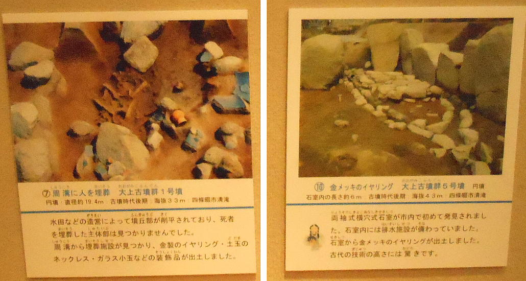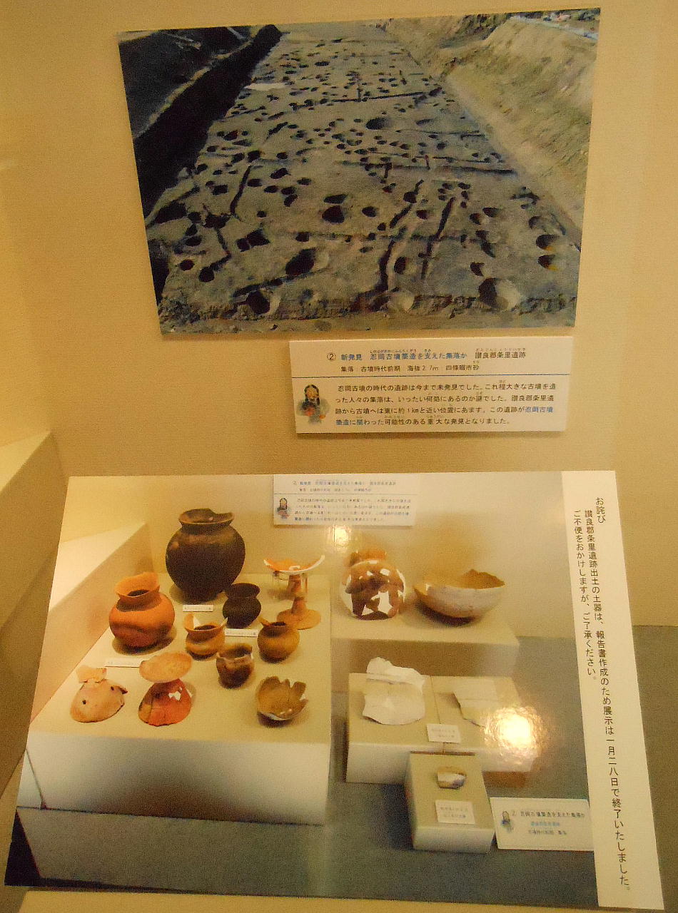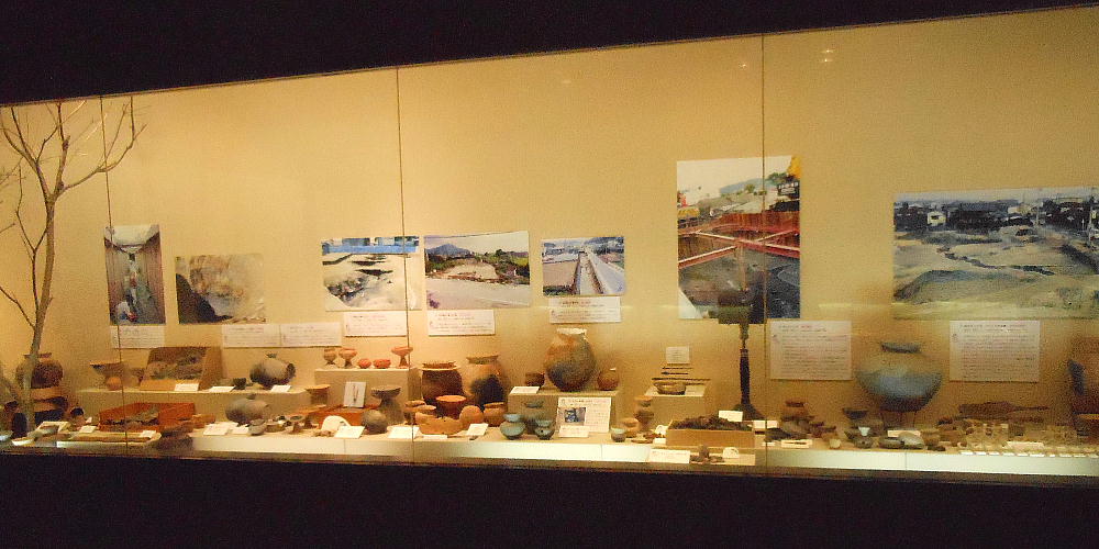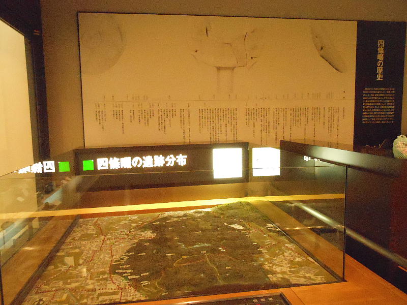 正面に大きな四条畷市内の遺跡分布図が掲げてある。展示室への廊下の端に「雁屋遺跡」から発掘された弥生人の全身骨格が