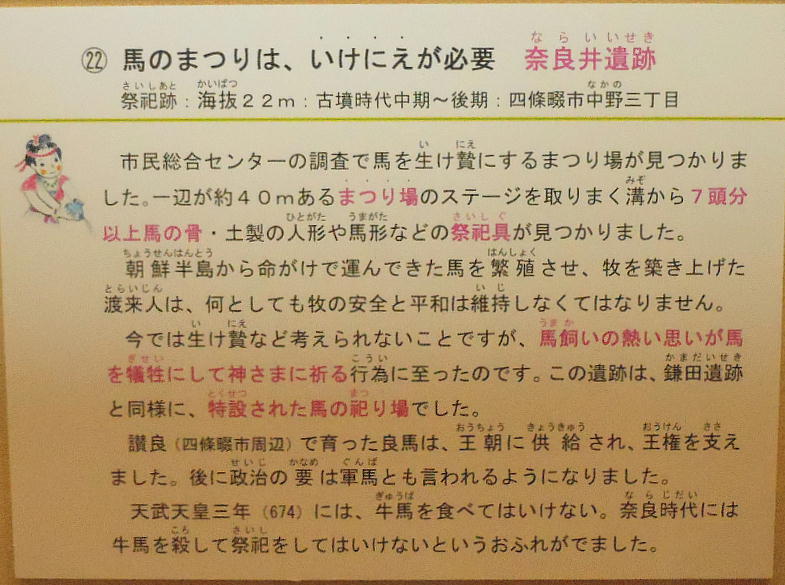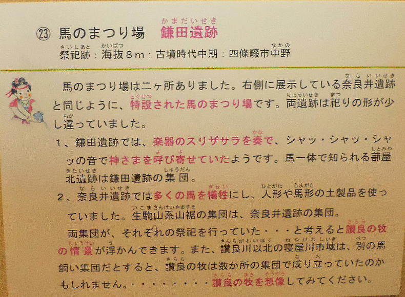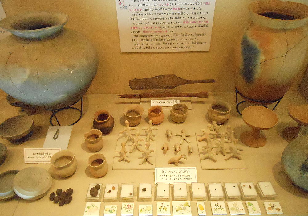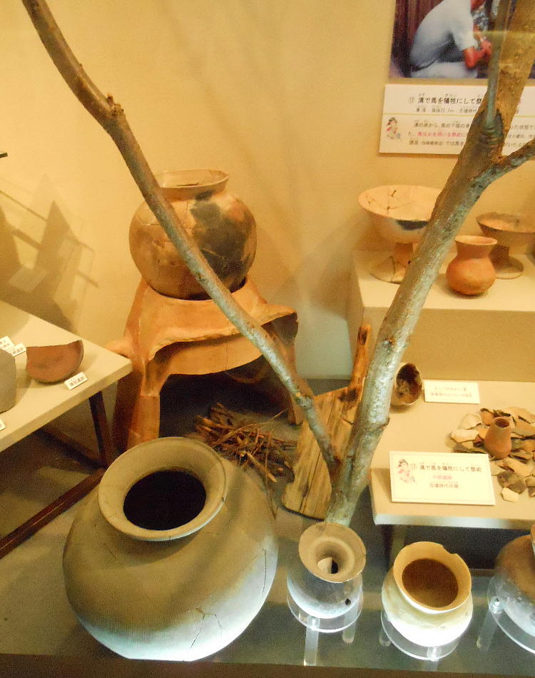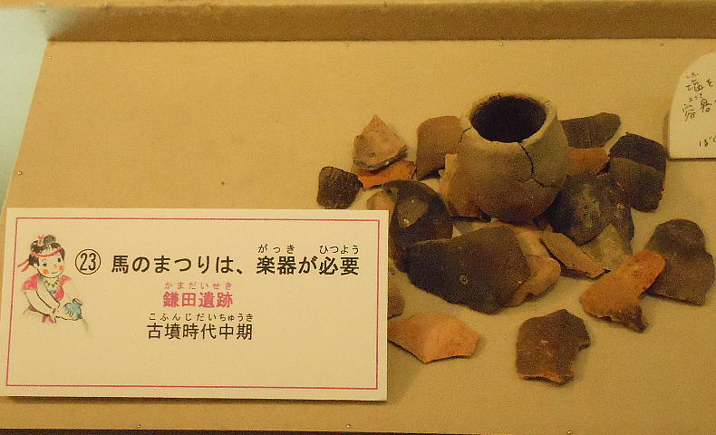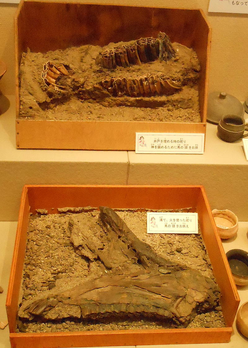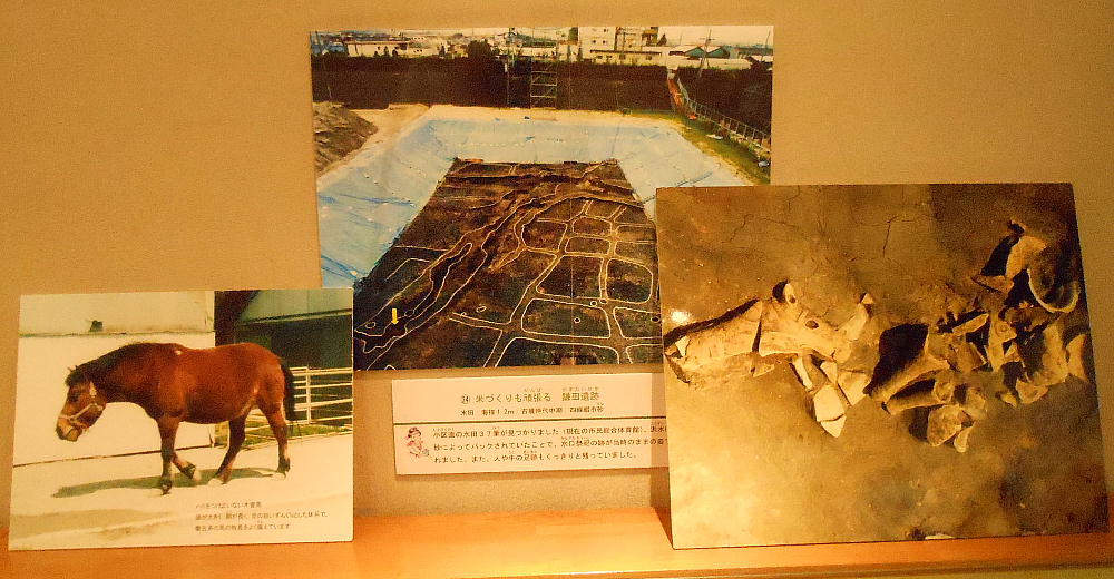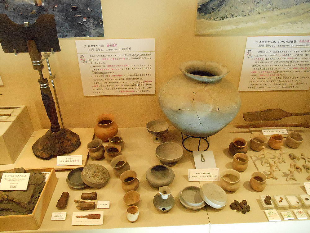 発掘された馬の歯や顎が展示してあって、「牧」の存在を証明している。