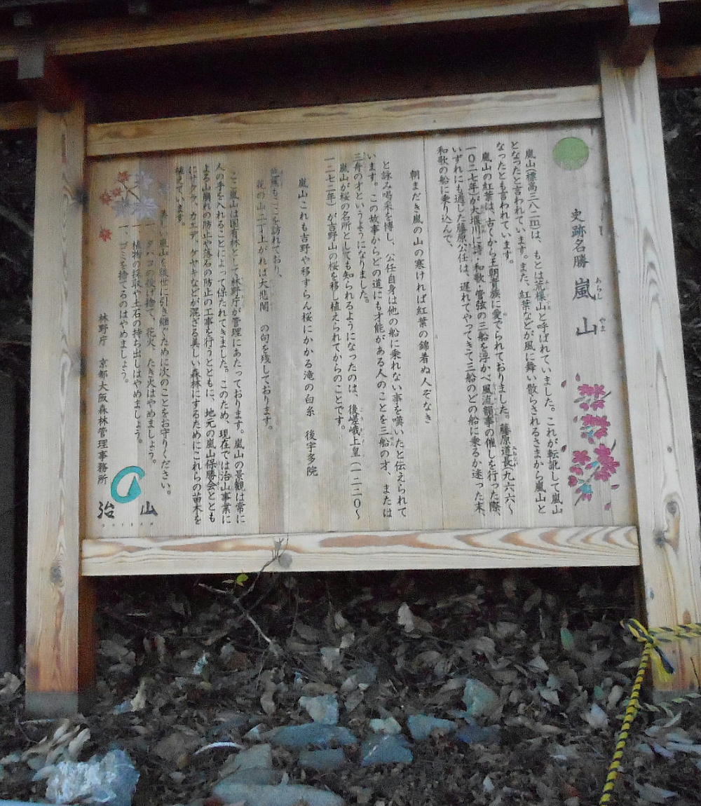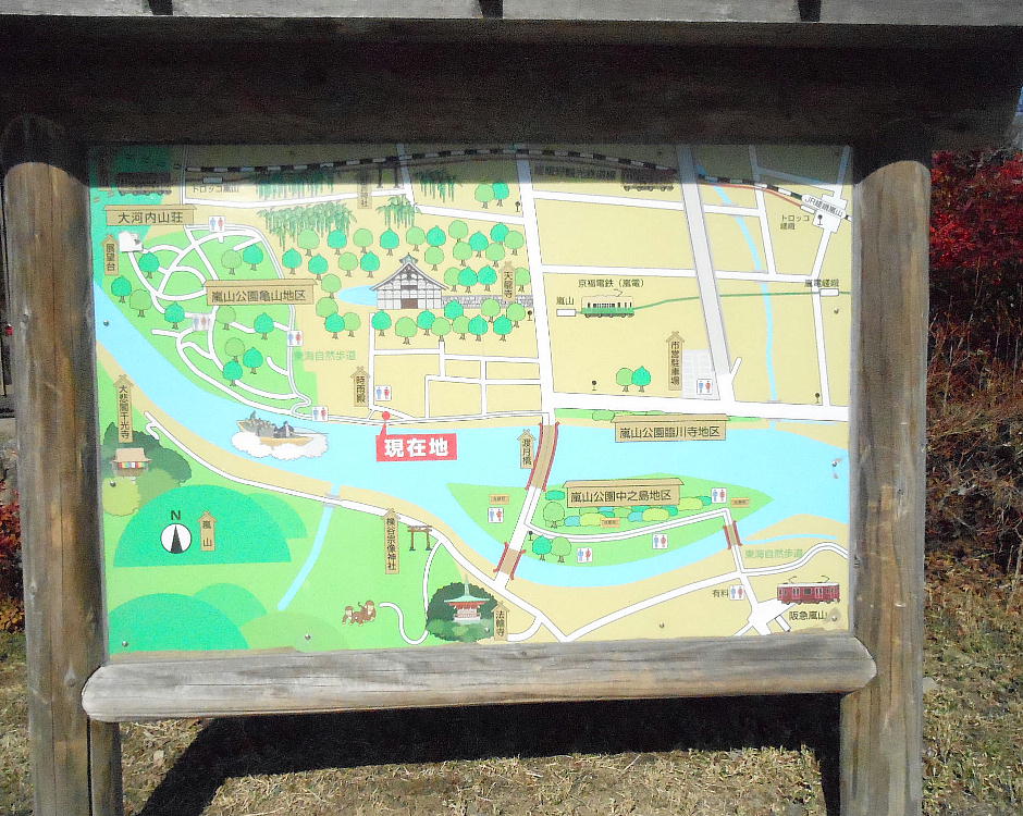 渡月橋を渡り、保津川の右岸(左岸かな?)を上流へ上って嵐山公園へゆく。実は本日嵐山へ来たのはここを訪れるのが目的だった。