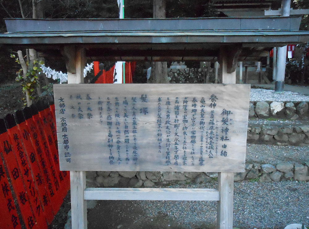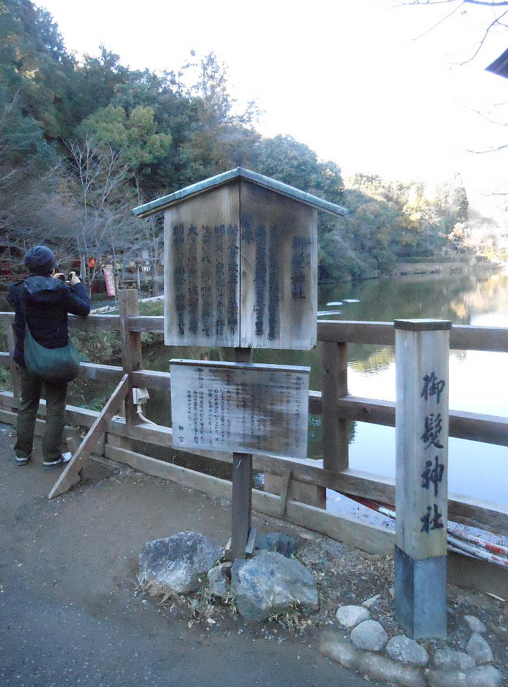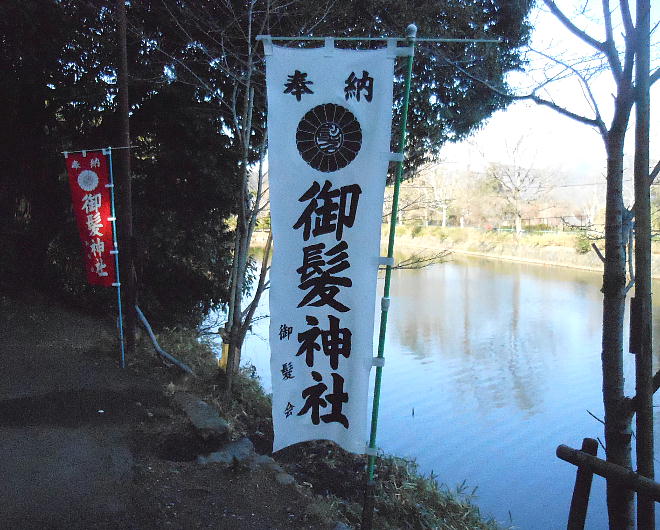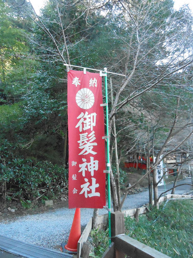 「高い!儂、昔見たからええわ」と入り口前でUターンしてさらに先へ進むと池があって「御髪神社」とあった。ここも全く記憶に無い。