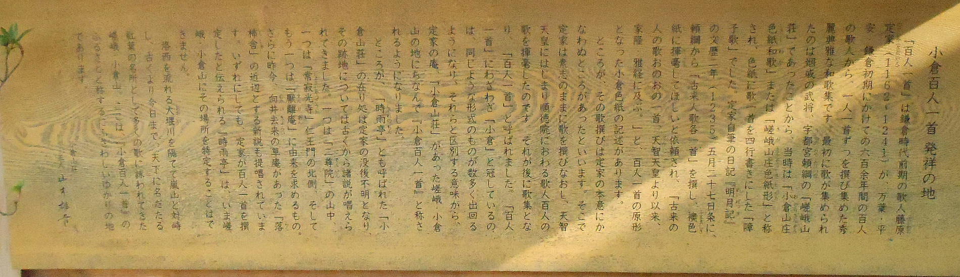 ここにある「小倉百人一首の碑」を巡る小さな旅なのだ。