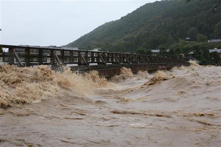 に避難指示を出した。約160の旅館やホテル、みやげ物店が並ぶ渡月橋付近では、観光シーズンを前に、30軒以上が浸水被害を受けた。