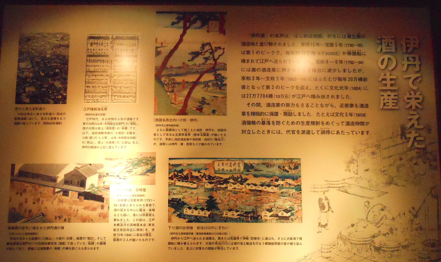清酒醸造で栄えた江戸期の伊丹では、俳諧文化が華開き、文人墨客(ぶんじんぼっかく)の往来も頻繁だった。この中で蓄積された文化