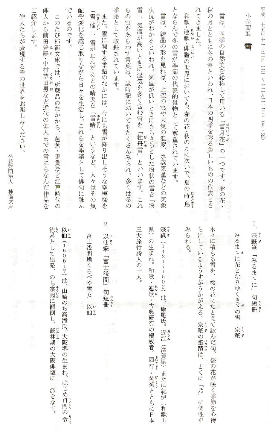 書館の「綿屋文庫」と並ぶ日本三大俳諧コレクションの一つという。