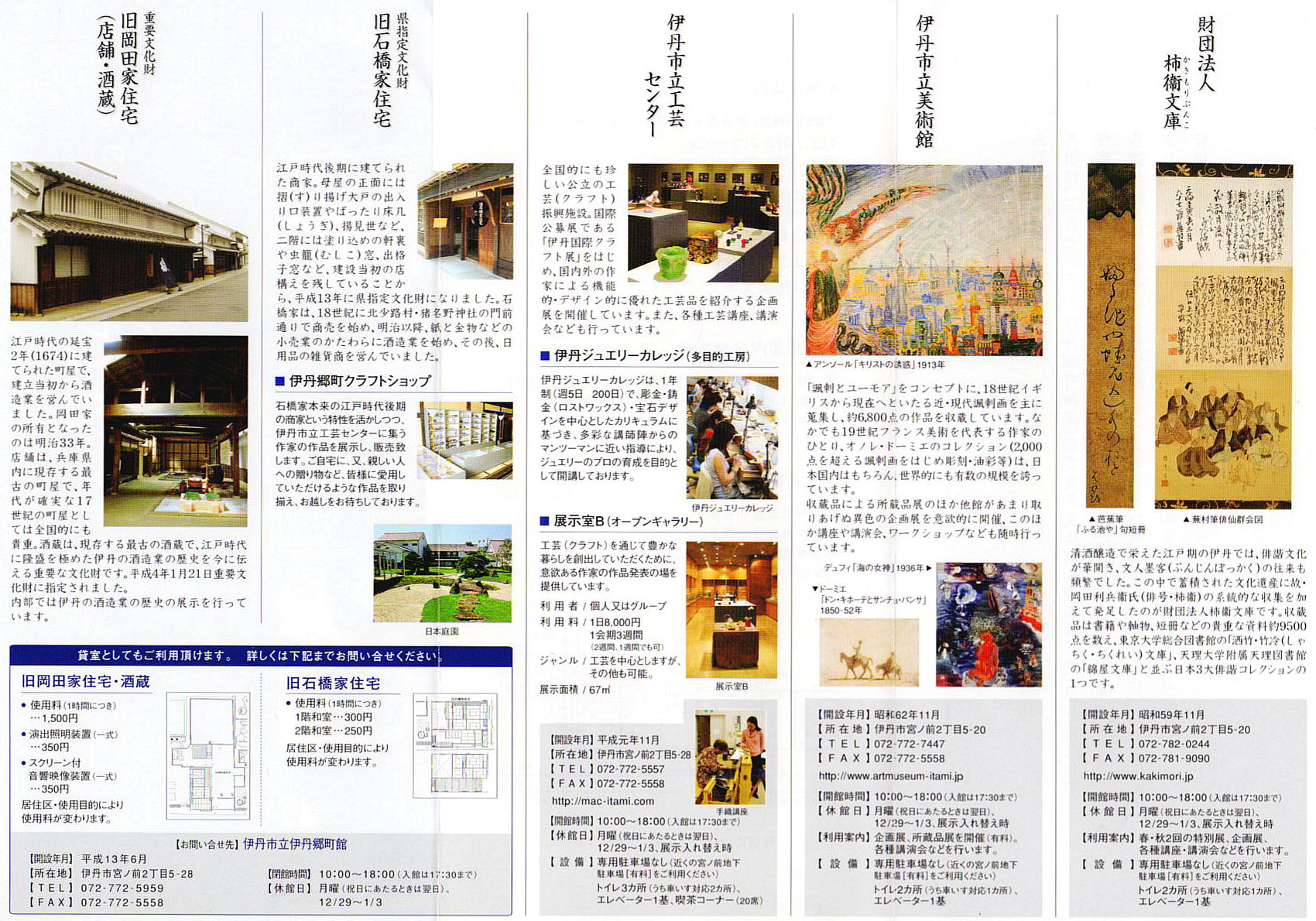 みやのまえ文化の郷は 美術館、工芸センター、伊丹郷町館(旧岡田家住宅、旧石橋家住宅、新町家をいう) に(財)柿衞文庫を加えた文