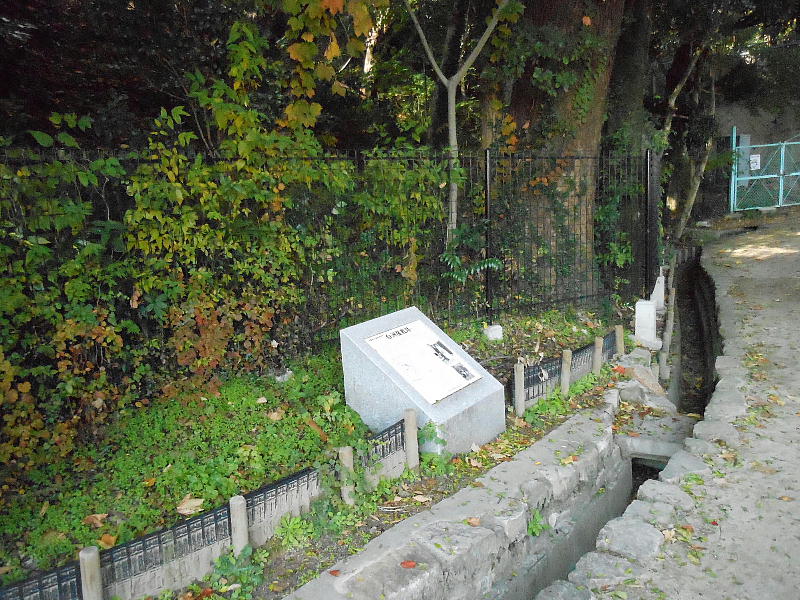 ここだけ歩けるように作ってある狭い散歩道をぐんぐん行くと、何やら石碑があった。