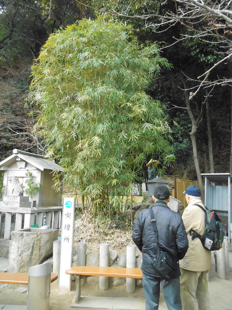 神宮皇后が三韓から帰って来て、肥前で鯛を釣ったときの釣り竿をここに埋めていたら生えてきたと言う竹。ホンマかいな。