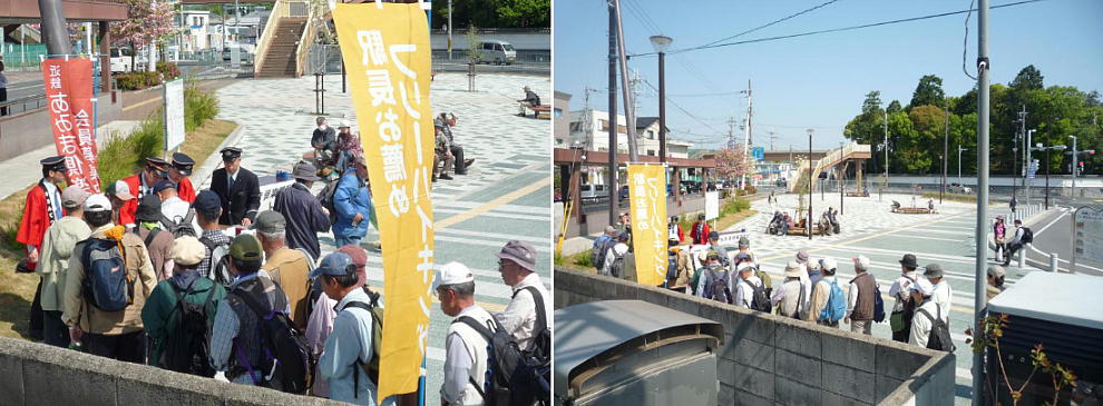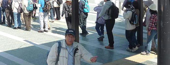 この行列は一体何やろか? 長蛇の列は駅長お薦めコースのハイキングの人たちだと郭公さんのHPに。