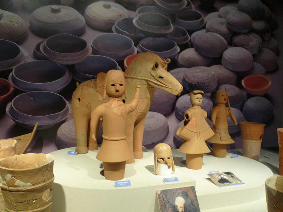 南側に入口がある石槨の中から夾紵棺(きょうちょかん:漆を塗った布を重ねあわせて作ったお棺)片と金環1個などが出土。