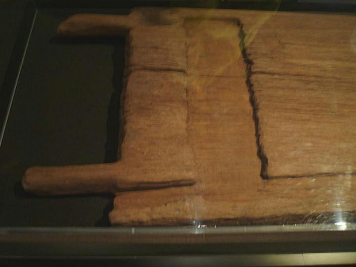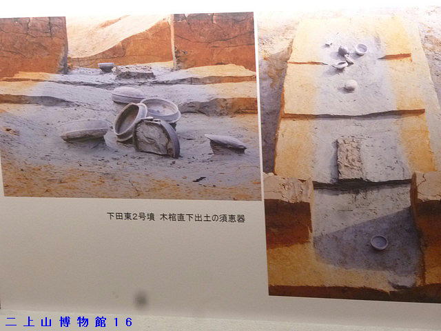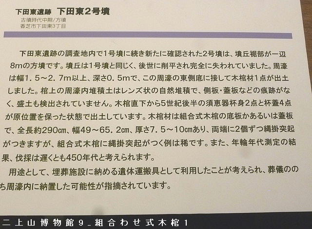 形の縄掛け突起をつけている。舟形石棺と長持ち石棺の中間の形。刳抜き式と家形の石棺材は、下田小学校の校庭で保管。