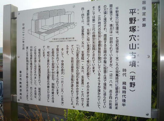 東へ1kmほどの所に平野車塚古墳(平野1号墳)がある。