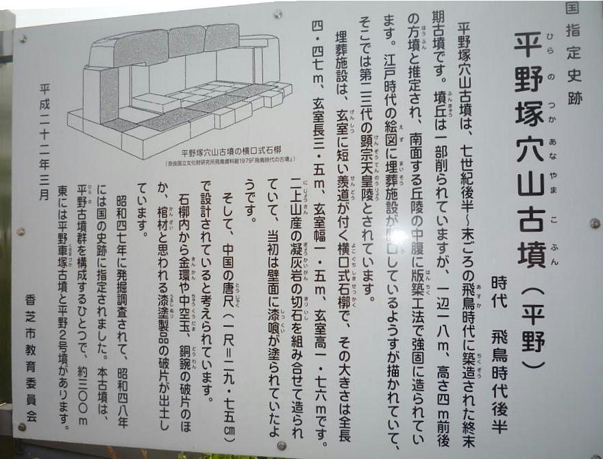 高さ1.76m、当時相当身分の高い貴人の墓と考えられる。昭和49年に国の史跡に指定された。築造には唐尺が使われているら
