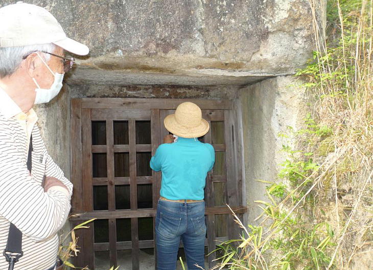 石槨は屯鶴峯付近の凝灰岩の切石を組み合わせて丁寧に作られ、漆喰も塗られていた。内部の規模は、長さ3.05m、幅1.5m、