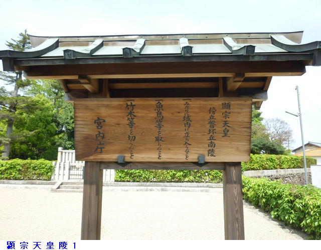 記述はなく、その存在そのものについても謎が多い天皇である。一方、顕宗天皇陵は国道168号から1本西に入った住宅街の中