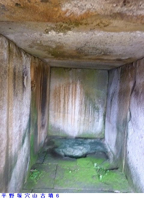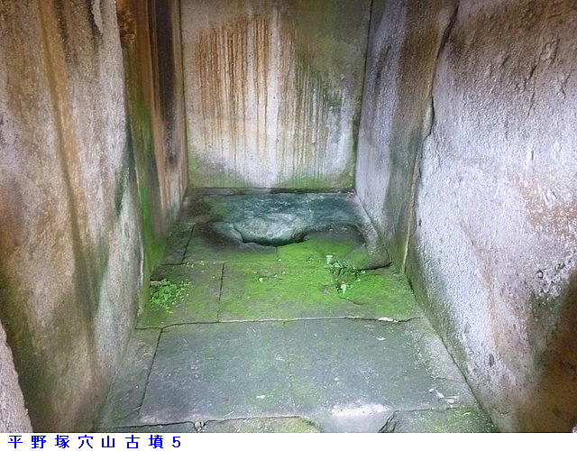 造られている。刳抜き式石棺は、長さ2.7m、幅1.4mの巨石で、内側は浅い舟底形、外側は丸い蒲鉾形に仕上げ、上下に筒