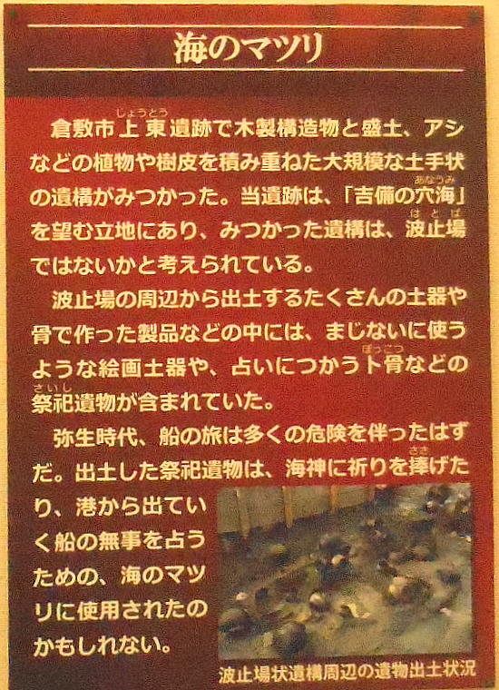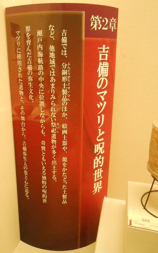 今日の展示を見る限りでは、吉備地方は九州や近畿とは異なった文化圏を持っていたようにも思える。私見では、おそらく吉備地方