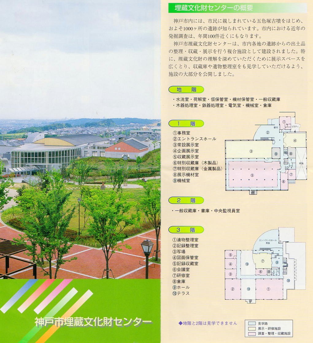 大きくとり、施設の大部分を公開し、埋蔵文化財を通して、神戸の歴史を身近に感じていただけるよう工夫してお