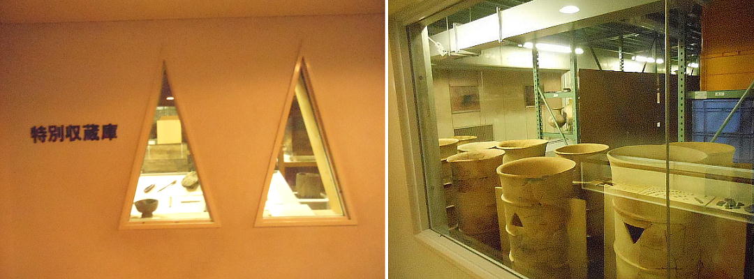 また、常設展示室の他に、収蔵展示室、特別収蔵庫というのもあって、ここにも遺物が展示されている。