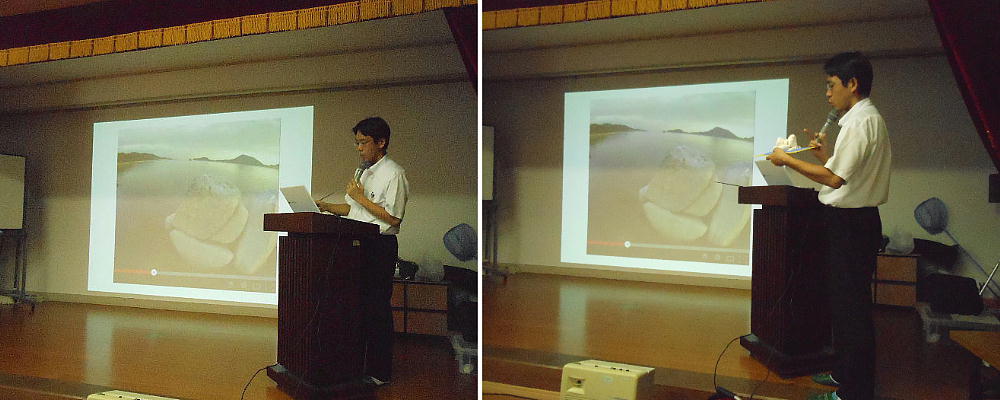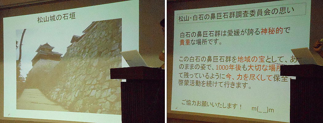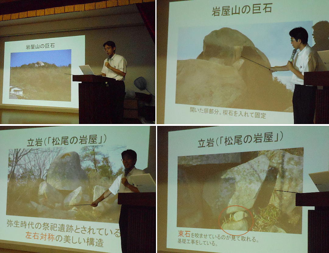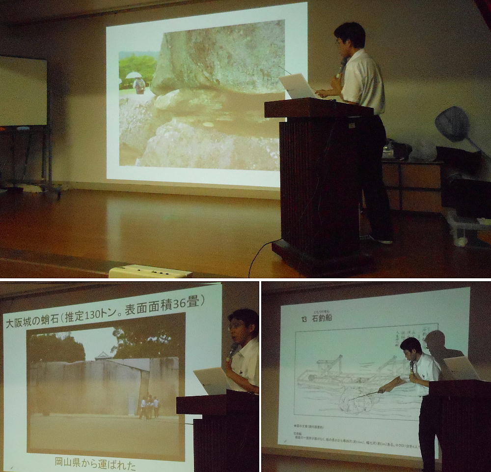 篠澤さんが、瀬戸内地方に点在する巨石群とその特徴を説明している。