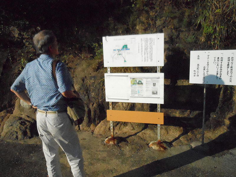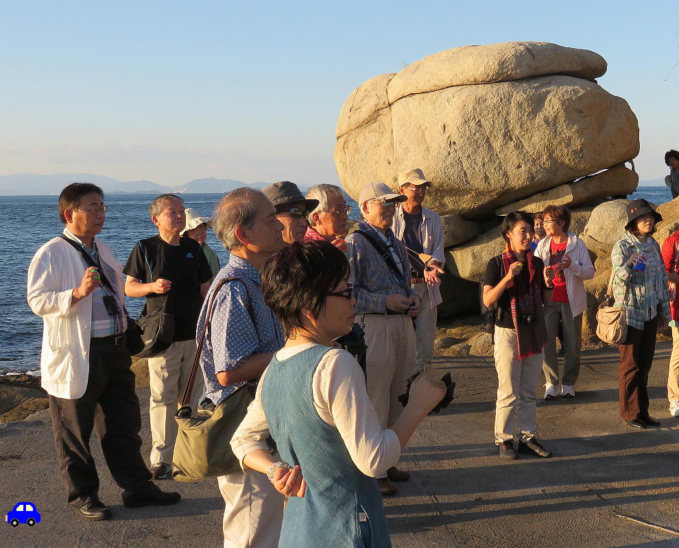 講演が終わって、夕陽鑑賞会の会場である「白石の鼻」までは各自勝手に集合だったので、我々は公民館の駐車場から車で
