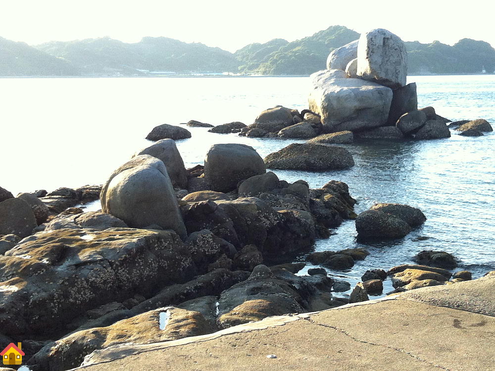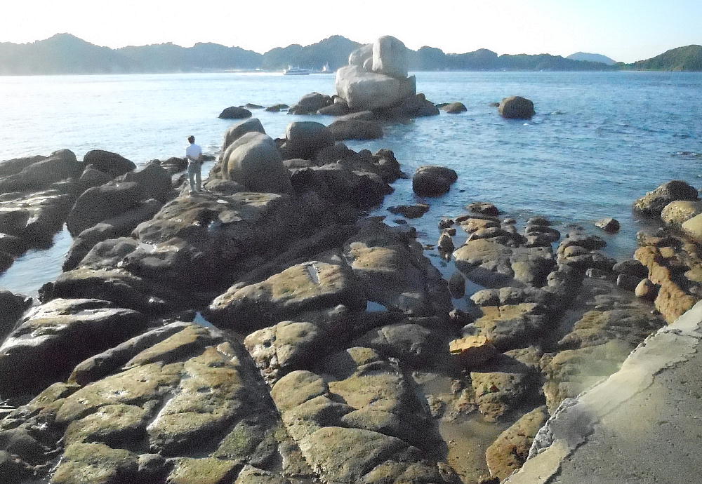 海岸の突端に佇む「三つ岩」。確かに奇岩だ。