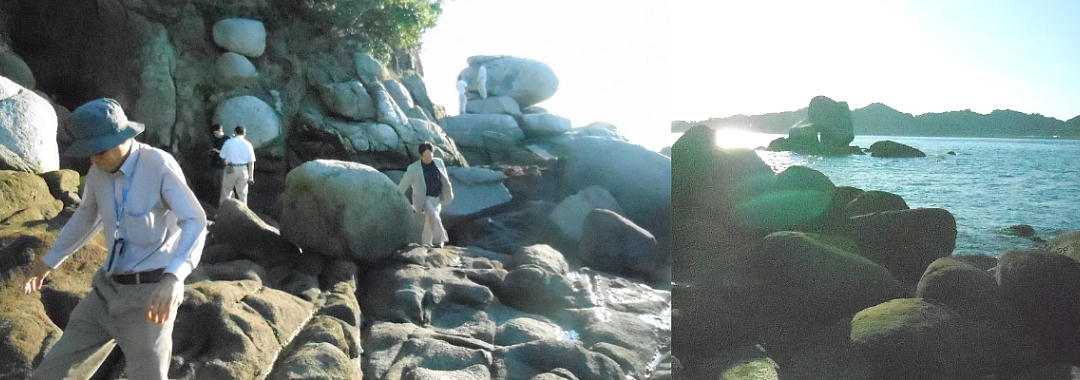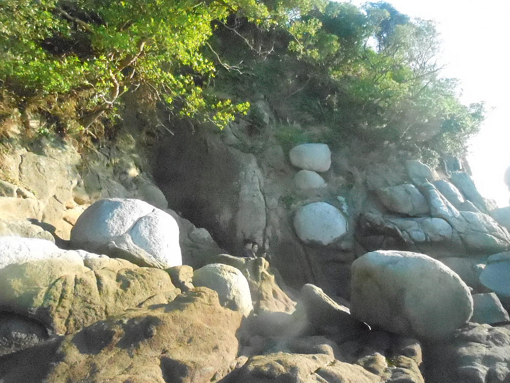なんかここの地質は変わってるよね。泥土の中に岩がめり込んでいる。