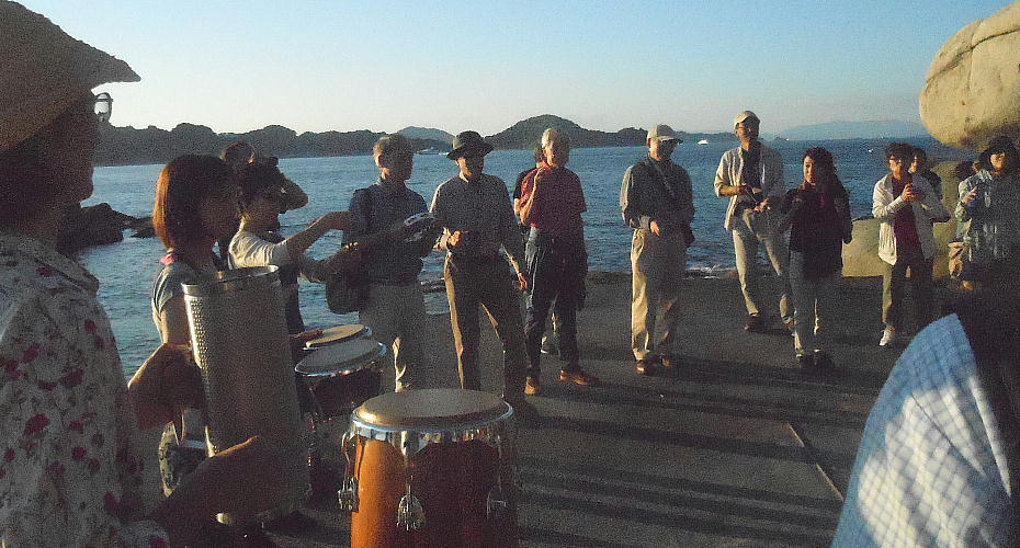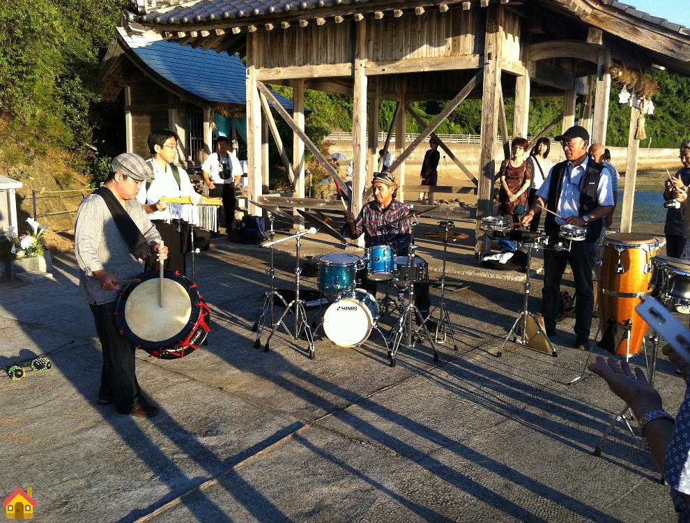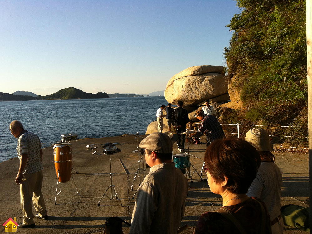 この催し(夕陽鑑賞会)に合わせて、地元のバンドの皆さんがミニ演奏会を開いてくれた。