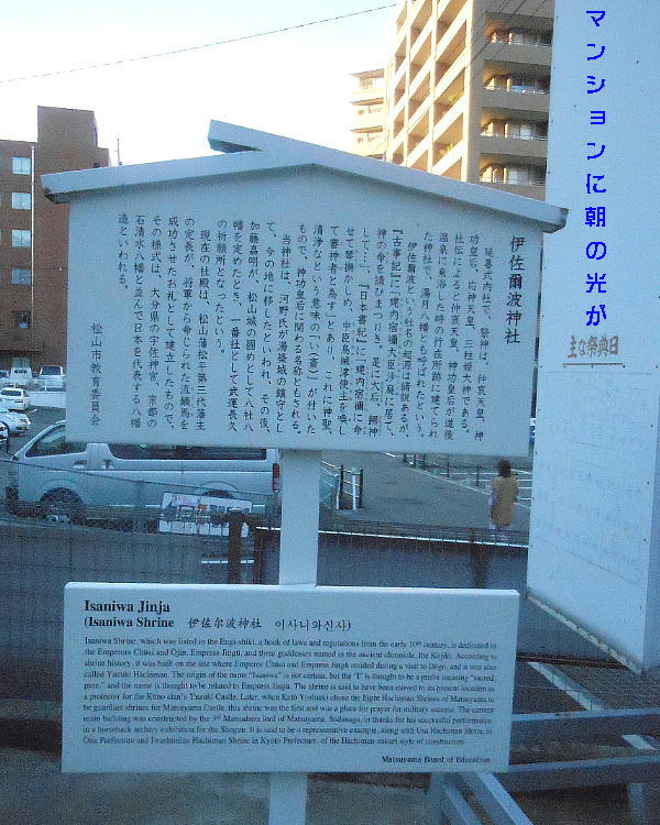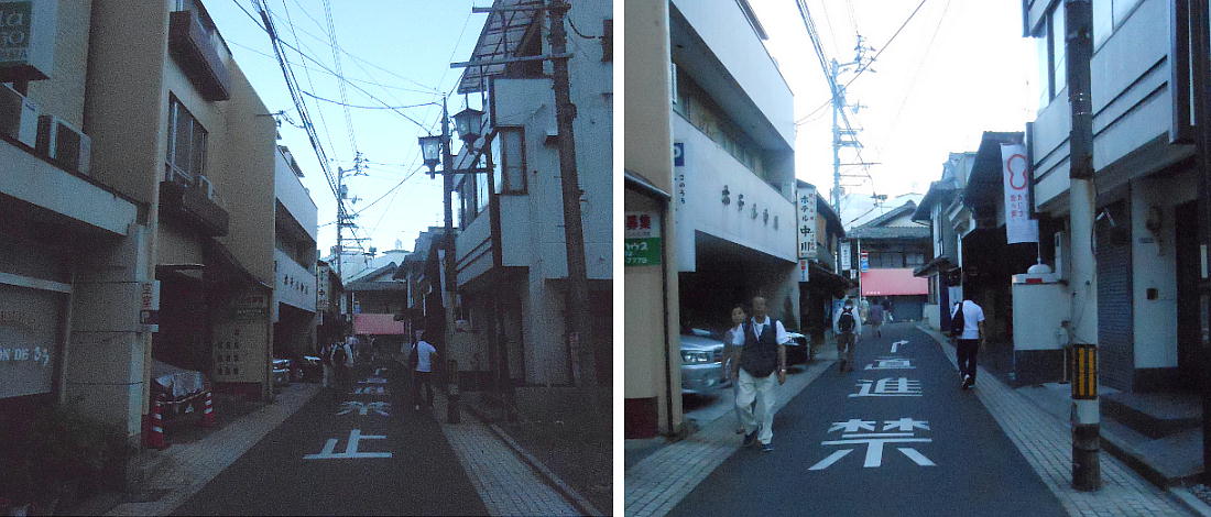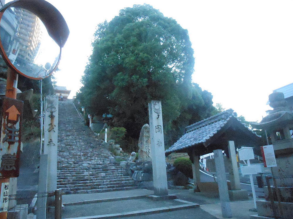 ホテルを出て「伊佐爾波神社」の駐車場に車を止めた。ここから石段を降ってゆくと道後温泉はすぐだった。
