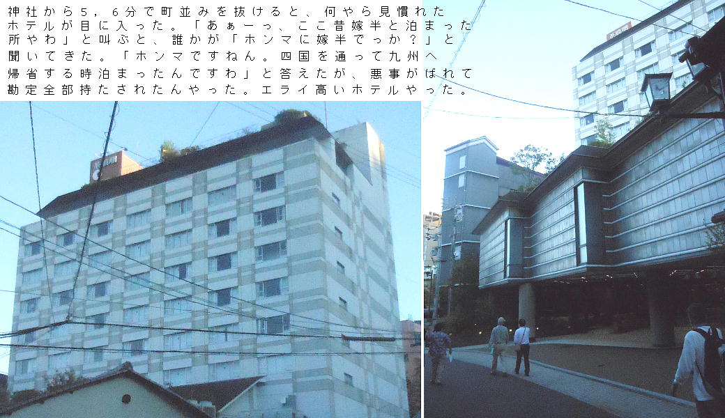駐車場からホテルへ戻り、車を置いて松山市街の散策にゆく。