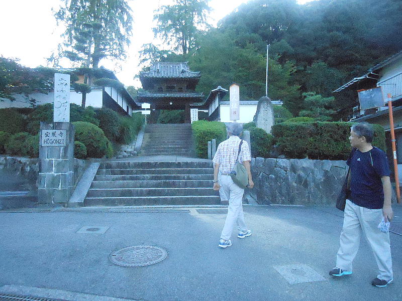 「来た道を戻るのは能が無いので違う道を通りましょう」と新開さん。一遍上人の寺「宝厳寺」の横を通ったら駐車場はすぐだった。